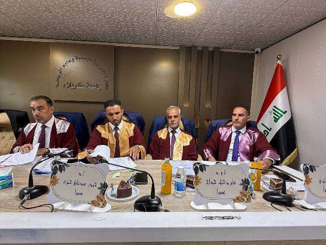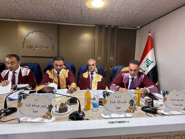 جرت مناقشة اطروحة دكتوراه في كلية التربية البدنية وعلوم الرياضة بجامعة كربلاء، للطالب علي حسين صبري عن اطروحته الموسومة ( أثر تدريبات بتموجية شدة التكرار في بعض المتغيرات الفسيولوجية واحتياطي السرعة وانجاز عدائي 400م حرة تحت 20 سنة) وعلى قاعة المناقشات في الكلية.