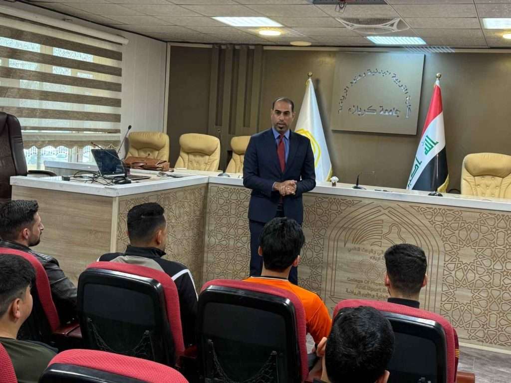 برعاية عميد كلية التربية البدنية وعلوم الرياضة في جامعة كربلاء نظمت شعبة التعليم المستمر دورة تدريبية علمية بعنوان (التدخين وأضراره على الصحة)، حاضر فيها التدريسيي في الكلية الأستاذ الدكتور حسين مناتي ساجت، وذلك على قاعة المناقشات، وبحضور عددٍ من طلبة الكلية.وهدفت الدورة إلى التعريف بمخاطر التدخين وآثاره السلبية على الصحة العامة واللياقة البدنية، ولاسيما لدى فئة الشباب والرياضيين، ورفع مستوى الوعي الصحي بأضرار هذه الظاهرة.وأوصت الورشة بضرورة تعزيز التثقيف الصحي داخل المؤسسات التعليمية، وتشجيع الطلبة على الابتعاد عن التدخين بجميع أنواعه، واعتماد أساليب حياة صحية تسهم في الحفاظ على اللياقة البدنية والصحة العامة.كما تناولت الدورة أنواع التدخين المختلفة مثل السجائر، والفيب (السجائر الإلكترونية)، والأركيلة، مع بيان مخاطر كل نوع وتأثيره المباشر وغير المباشر على أجهزة الجسم المختلفة.