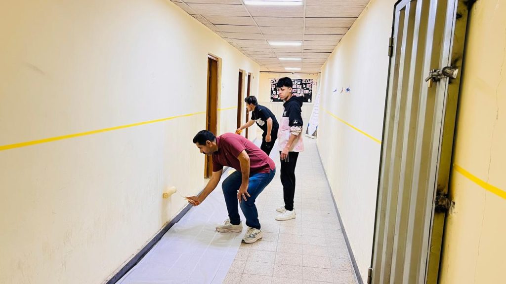شعبة الإعلام: وسن البلداويفي إطار سعيها المتواصل لتحسين البيئة التعليمية، تواصل كلية التربية البدنية وعلوم الرياضة في جامعة كربلاء حملتها الخدمية خلال فترة العطلة، مركّزةً على استكمال أعمال صبغ القاعات الدراسية والممرات في بناية الأقسام والقاعات الدراسية، بما يعكس حرصها على الارتقاء بالمظهر العام للمؤسسة التعليمية.وجاءت هذه الحملة بتوجيهات من عميد الكلية الأستاذ الدكتور حبيب علي طاهر، وبإشراف مباشر من الأستاذ الدكتور عباس عبد الحمزة، معاون العميد للشؤون الإدارية، ومتابعة المعاون العلمي الأستاذ الدكتور حسن علي حسين، ورئيس فرع العلوم النظرية الأستاذ الدكتور نادية شاكر جواد، وجهود استثنائية لشعبة الصيانة وبحضور السيد العميد ومدير شعبة الدراسات العليا الأستاذ الدكتور سامر عبد الهادي، الذين أكدوا جميعاً أهمية استثمار العطلة في تنفيذ أعمال الصيانة والتطوير دون التأثير على سير العملية التعليمية.وشملت الأعمال تنفيذ صبغ شامل للقاعات والممرات باستخدام مواد ذات جودة عالية، بهدف إضفاء مظهر جمالي حديث ينسجم مع متطلبات البيئة التعليمية المتطورة، فضلاً عن تحسين الأجواء العامة داخل الكلية، بما ينعكس إيجاباً على راحة الطلبة أثناء دوامهم اليومي.وتأتي هذه الجهود استكمالاً لسلسلة من الحملات التطويرية التي تنفذها الكلية، تأكيداً لالتزامها بتوفير بيئة تعليمية متكاملة، واستثمار جميع الإمكانيات المتاحة، بما فيها فترات العطل، للارتقاء بمستوى الخدمات المقدمة ودعم المسيرة العلمية للطلبة.