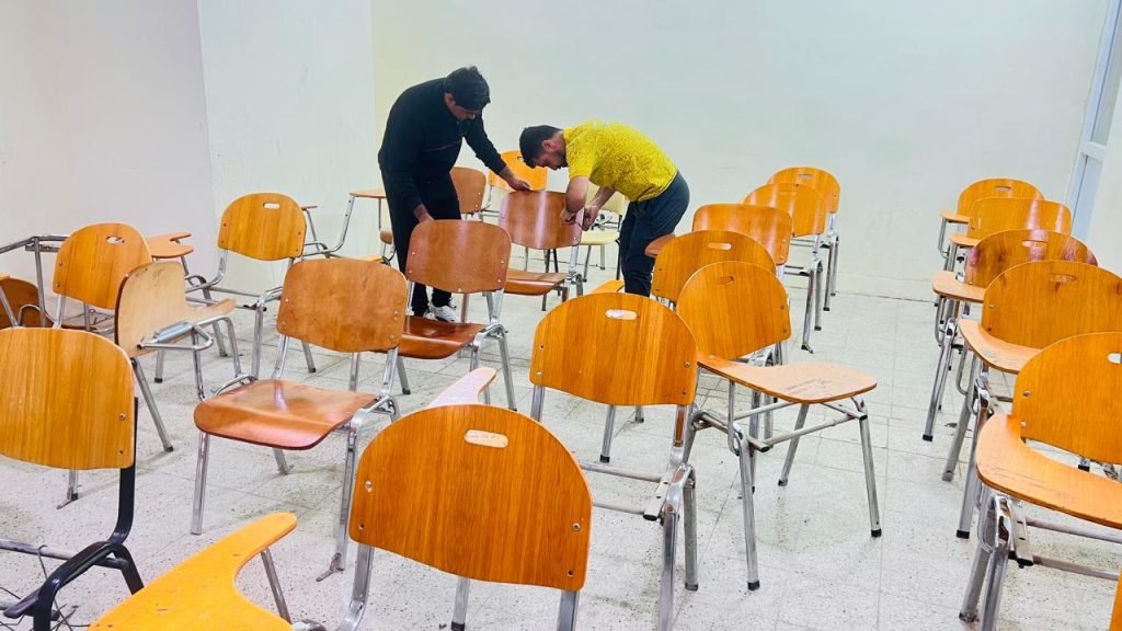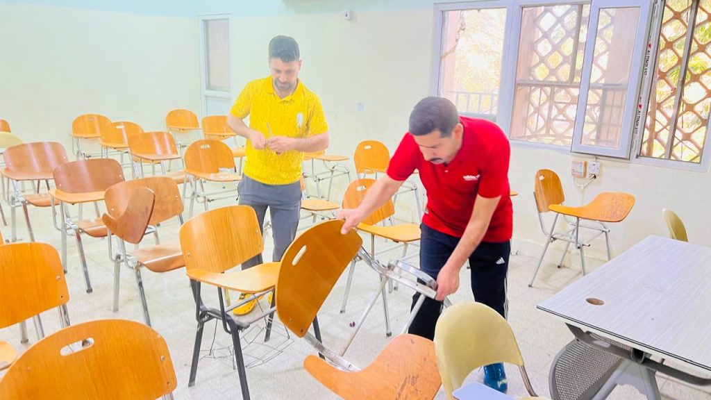 شعبة الإعلام: وسن البلداويفي خطوة تعكس حرصها على تحسين البيئة التعليمية، باشرت كلية التربية البدنية وعلوم الرياضة في جامعة كربلاء بحملة خدمية خلال فترة العطلة اليومين، إضافة إلى يومي الجمعة والسبت، تضمنت صبغ وتغليف المقاعد الدراسية في جميع القاعات، بهدف تهيئة أجواء دراسية أكثر راحة وتنظيماً للطلبة.وجاءت هذه الحملة بتوجيهات من عميد الكلية الأستاذ الدكتور حبيب علي طاهر، وبإشراف مباشر من الأستاذ الدكتور عباس عبد الحمزة، معاون العميد للشؤون الإدارية، ومتابعة من المعاون العلمي الأستاذ الدكتور حسن علي حسين، ورئيس فرع العلوم النظرية الأستاذ الدكتور نادية شاكر جواد. حيث أكدوا جميعاً أن استغلال فترة العطلة يمثل فرصة مثالية لإنجاز أعمال الصيانة والتطوير دون التأثير على سير المحاضرات، بما يسهم في الارتقاء بالبنية التحتية للكلية.وشملت الأعمال استخدام مواد حديثة في تغليف المقاعد للحفاظ عليها من التلف وإطالة عمرها الافتراضي، إلى جانب تنفيذ أعمال صبغ تمنح القاعات مظهراً جمالياً متجدداً يعزز من راحة الطلبة أثناء تلقيهم الدروس.وتأتي هذه المبادرة ضمن سلسلة من الحملات التي أطلقتها الكلية منذ فترة، في إطار سعيها المستمر لتطوير مرافقها وتوفير بيئة تعليمية ملائمة تواكب متطلبات التعليم الحديث.وتؤكد هذه الجهود التزام الكلية باستثمار جميع الإمكانيات المتاحة، بما فيها أوقات العطل، للارتقاء بمستوى الخدمات المقدمة، وخلق بيئة تعليمية متكاملة تدعم الطلبة وتساعدهم على تحقيق أفضل النتائج العلمية.